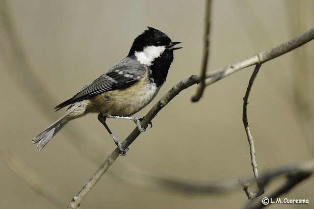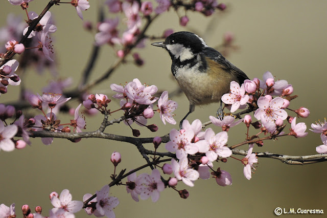 Otro pájaro con el que tengo "una buena relación" es el carbonero garrapinos que, también por estas fechas está como loco buscando pareja y cantando sin cesar...