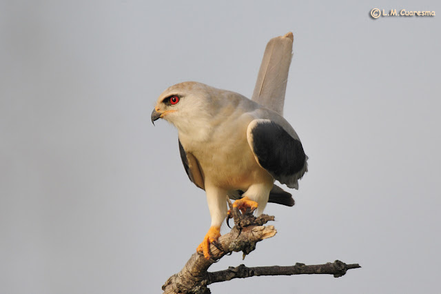 * Desde el hide del elanio 2012 de Greenextremadura, una tarde aún tormentosa, con el cielo plomizo, aunque, a última hora, un rayo de sol poniente dio color al elanio: