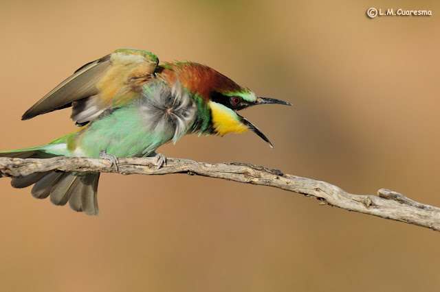 De ahí que los observadores y los fotógrafos andemos locos de un lado para otro: "Que ya están los primillas por aquín..." "Que ya han llegado las carracas..." "El roquero solitario está que se sale..." En fin, que cuando llegas a casa y tienes que comenzar a borrar fotos, te quedan pocas ganas de liarte con tu blog.