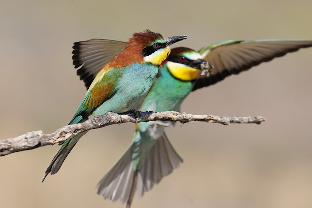 No contento con el derroche de color que me traje a casa con la carraca, he tenido oportunidad de fotografiar a otro pájaro que siempre alegra la primavera a los fotógrafos. En este caso, por gentileza de mi amigo Mario. Siempre digo que el martín pescador, el abejaruco y la carraca, son pájaros que los fotógrafos nunca se cansan de inmortalizar.